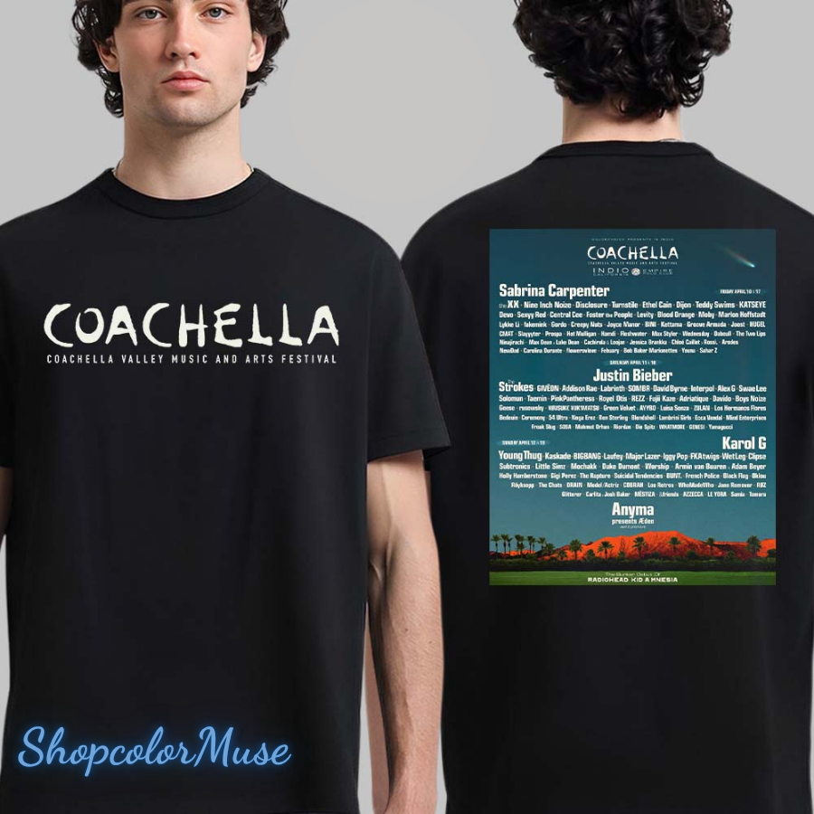 Coachella 2026 Official Poster Lineup Indio California At Empire Polo Club From April 10 to 19 2026 Two Sided T-Shirt