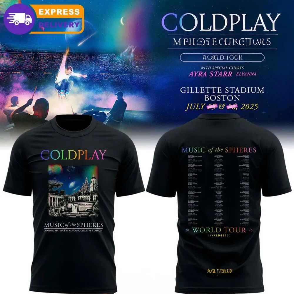 Coldplay Gillette Stadium 2025 Music of the Spheres World Tour Shirt