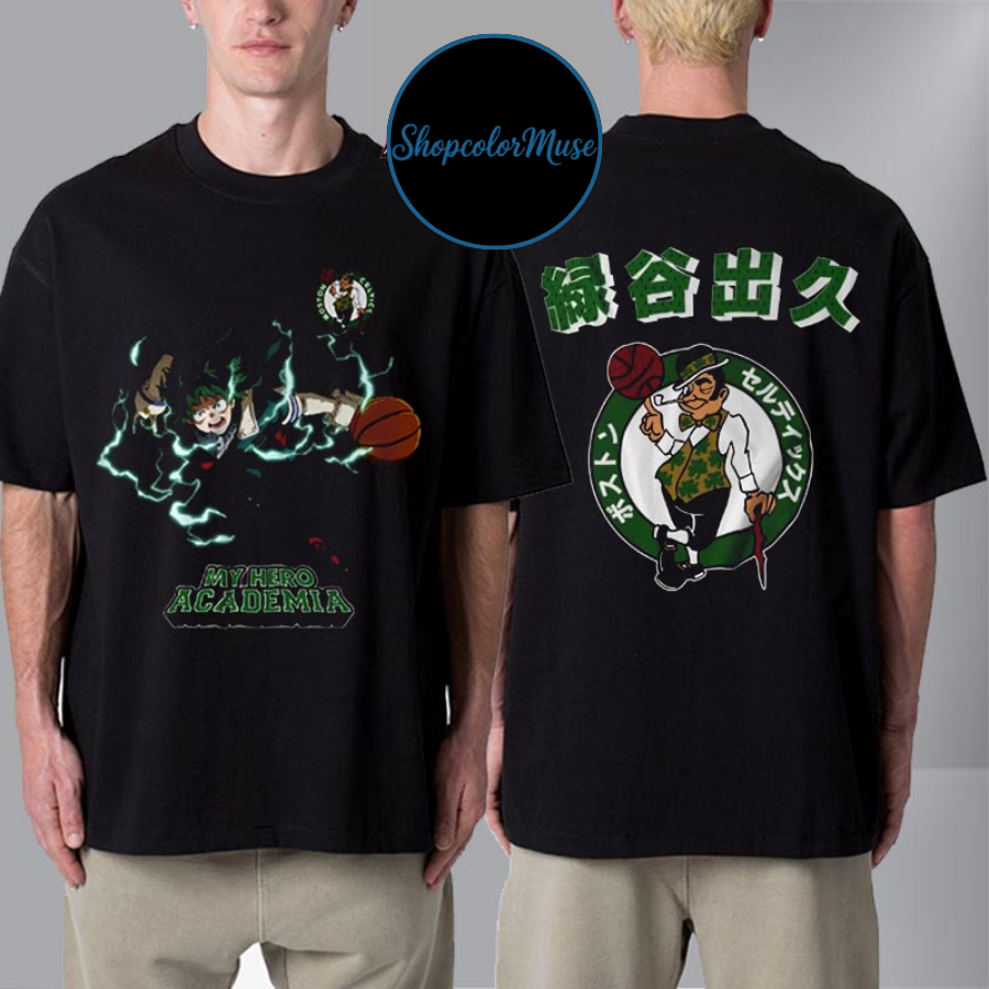 Hyperfly x NBA x My Hero Academia Midoriya Izuku Boston Celtics Unisex T Shirt Two Sided