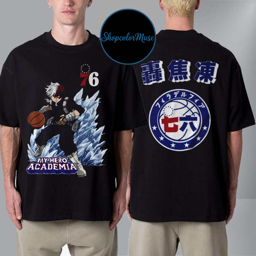 Hyperfly x NBA x My Hero Academia Todoroki Shoto Philadelphia 76ers Unisex T Shirt Two Sided