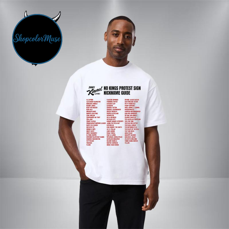 Jimmy Kimmel No Kings Protest Sign Nickname Guide Unisex T Shirt