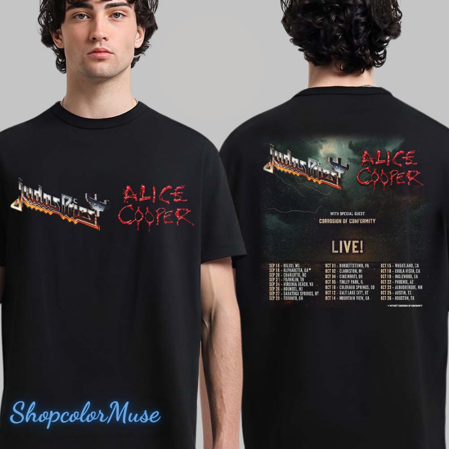 Judas Priest And Alice Cooper North American Tour 2025 Fall Cities Dates Two Sided Classic T-Shirt