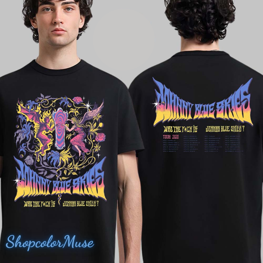 Johnny Blue Skies Who The Fuck Is Johnny Blue Skies Tour 2025 Poster With Tour Schedule Dates Good and Evil Art Two Sides Unisex T-Shirt