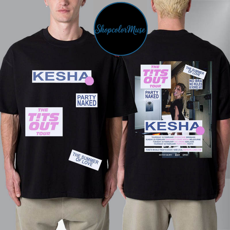 Kesha The Tits Out Tour Australia 2026 The Summer Of Love Party Naked Poster Schedule Cities Tour Dates Unisex T-Shirt Two Sided
