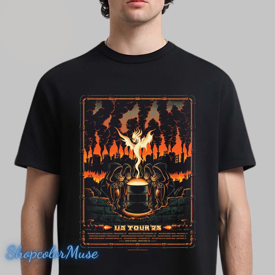 King Gizzard And The Lizard Wizard US Tour 2025 Phoenix Fire Art With Cities List Classic T-Shirt