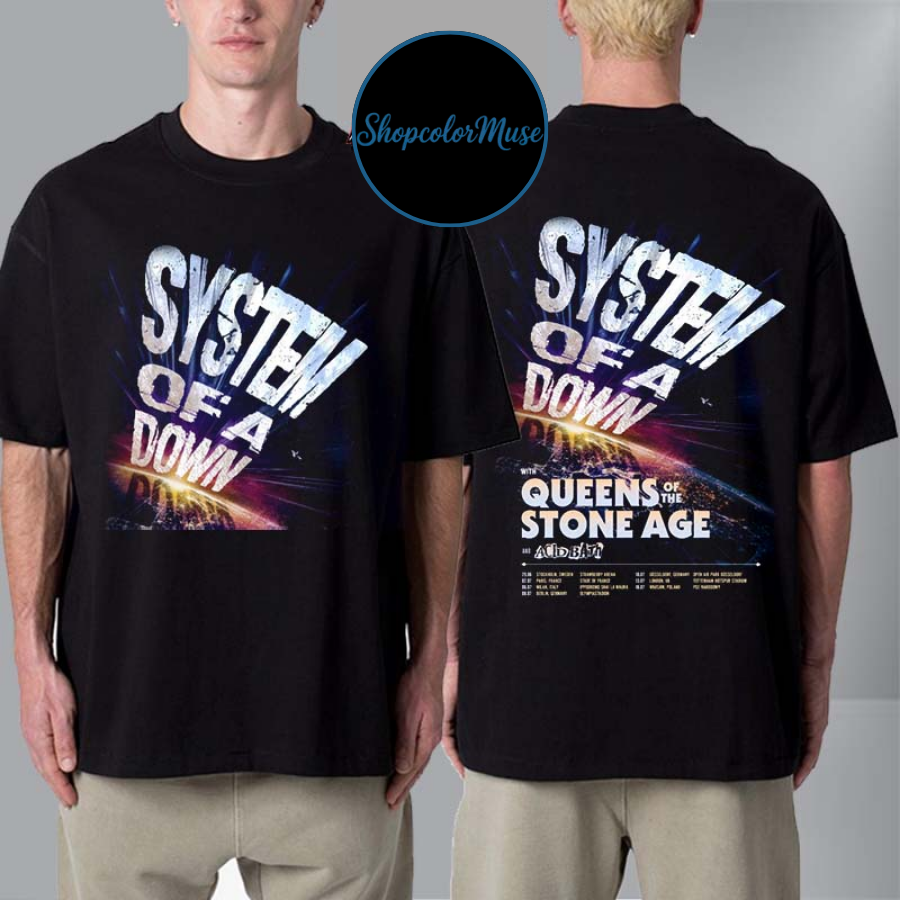 System Of A Down UK Europe Summer 2026 Tour Schedule Featuring Queen Of The Stone Age And Acid Bath Unisex T Shirt Two Sided