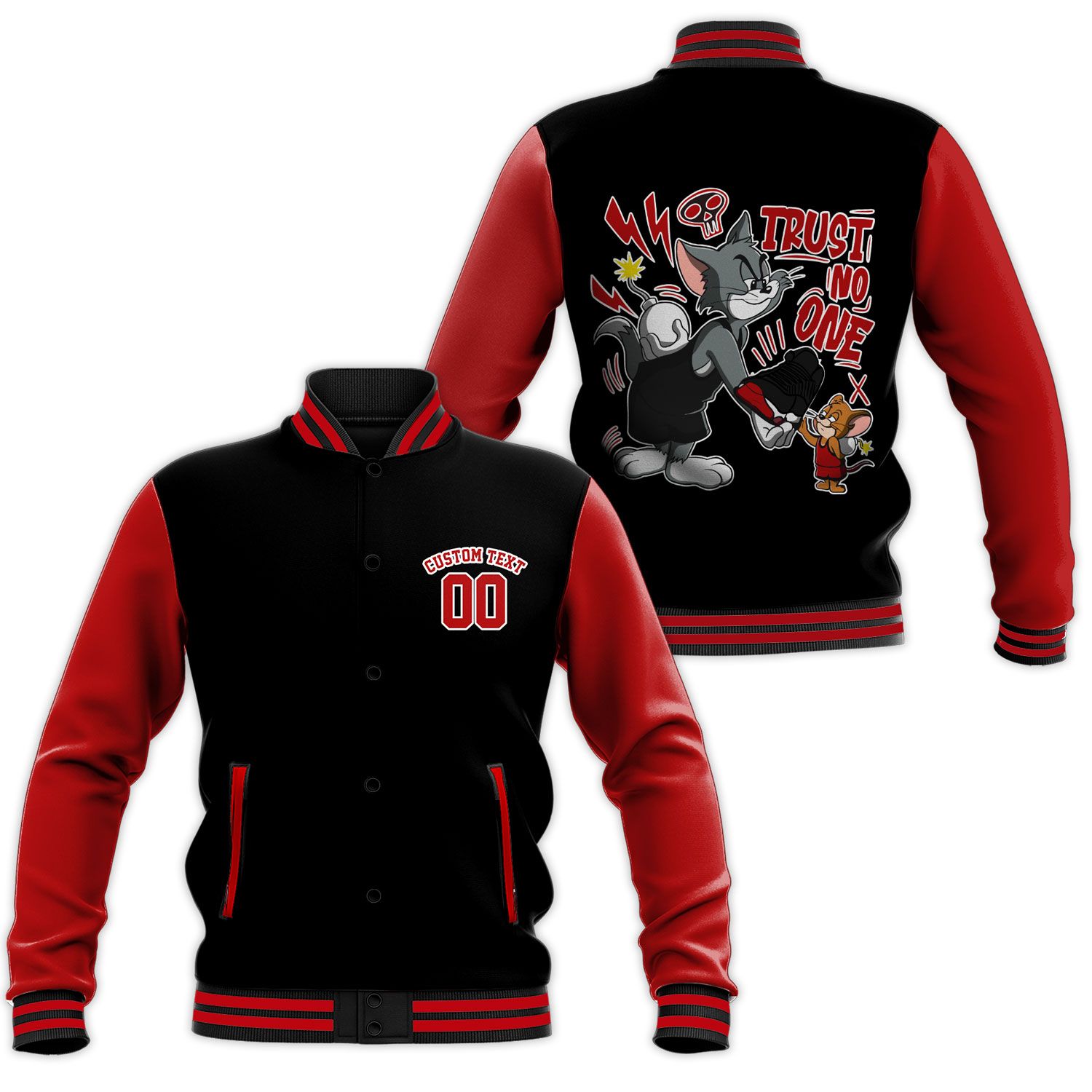 Custom Bred Velvet Casual Varsity Jacket Trust No One Cat And Mouse Baseball Jacket