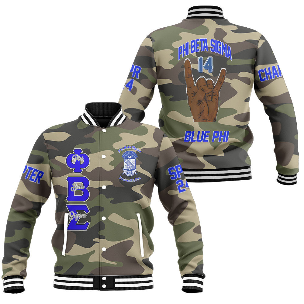 Customized Phi Beta Sigma Baseball Jackets Camouflage 1914 Pbs Handsign Style