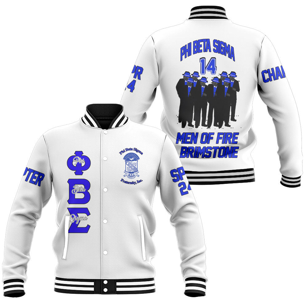 Customized Phi Beta Sigma Baseball Jackets White Color The Men Of Sigma For Men Women