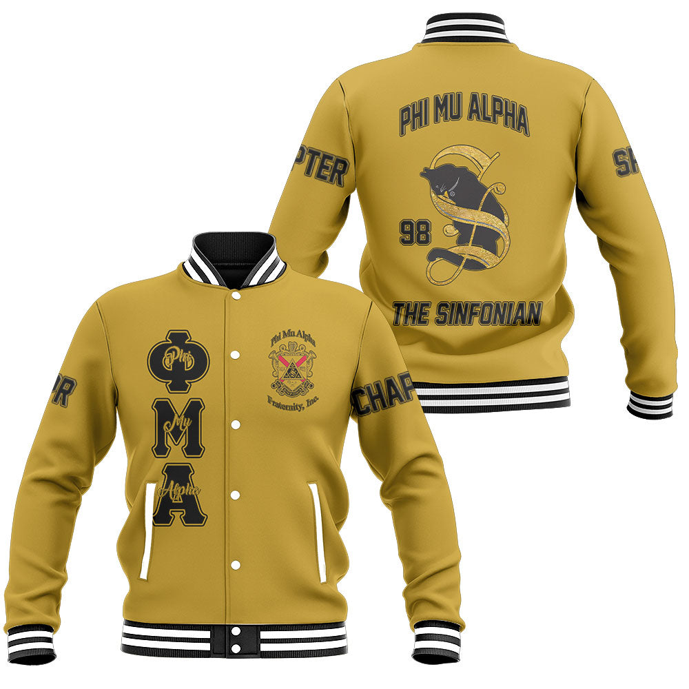 Customized Phi Mu Alpha Baseball Jackets Yellow Black Sinfonia Fraternity Style