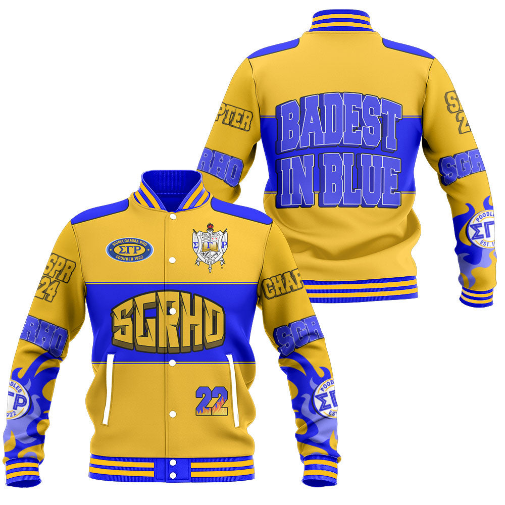 Customized Sigma Gamma Rho Baseball Jacket Gold Flame Style