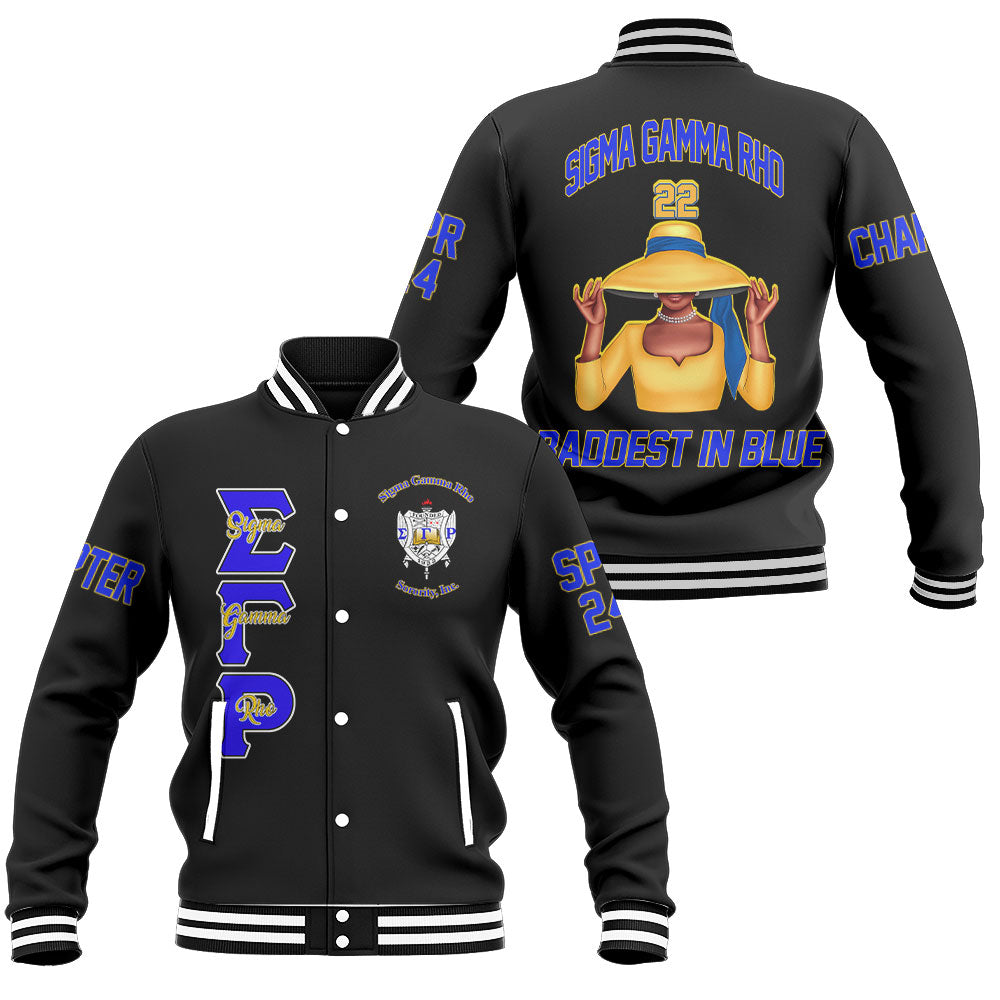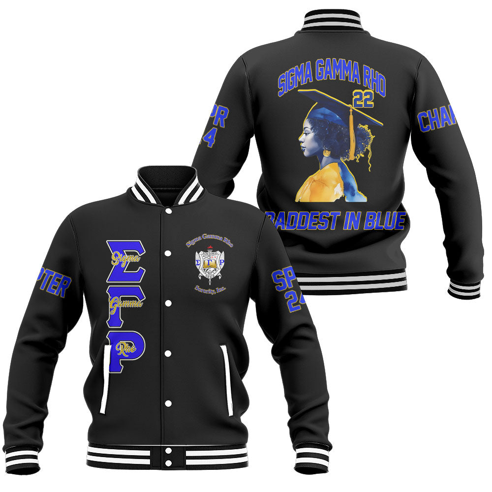 Customized Sigma Gamma Rho Baseball Jackets Black 1922 The Baddest In Blue Style