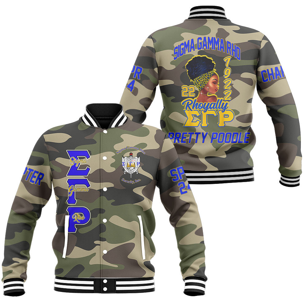 Customized Sigma Gamma Rho Baseball Jackets Camouflage The Queen Sgrho Poodles Style