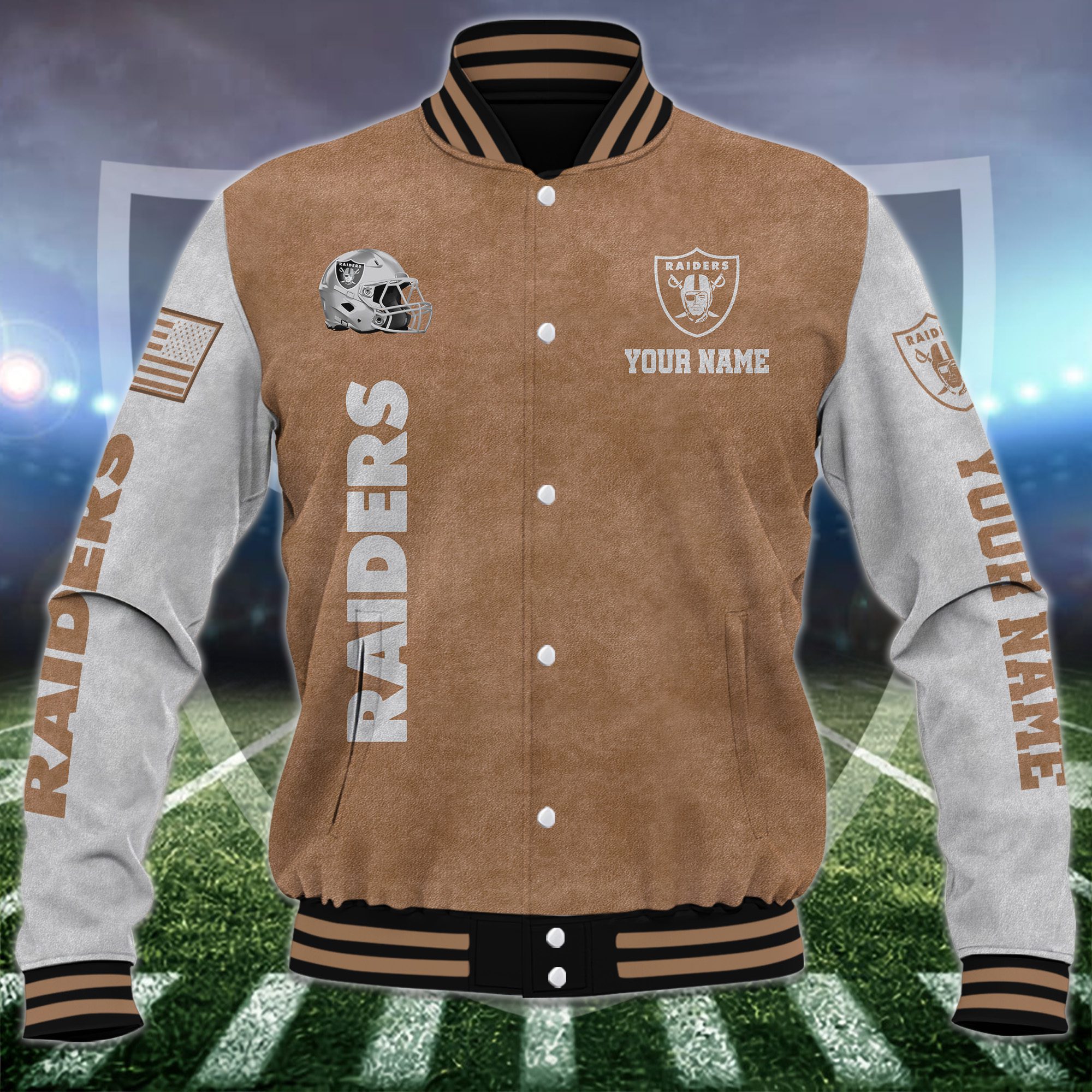 Las Vegas Raiders Brown Baseball Jacket Custom Name