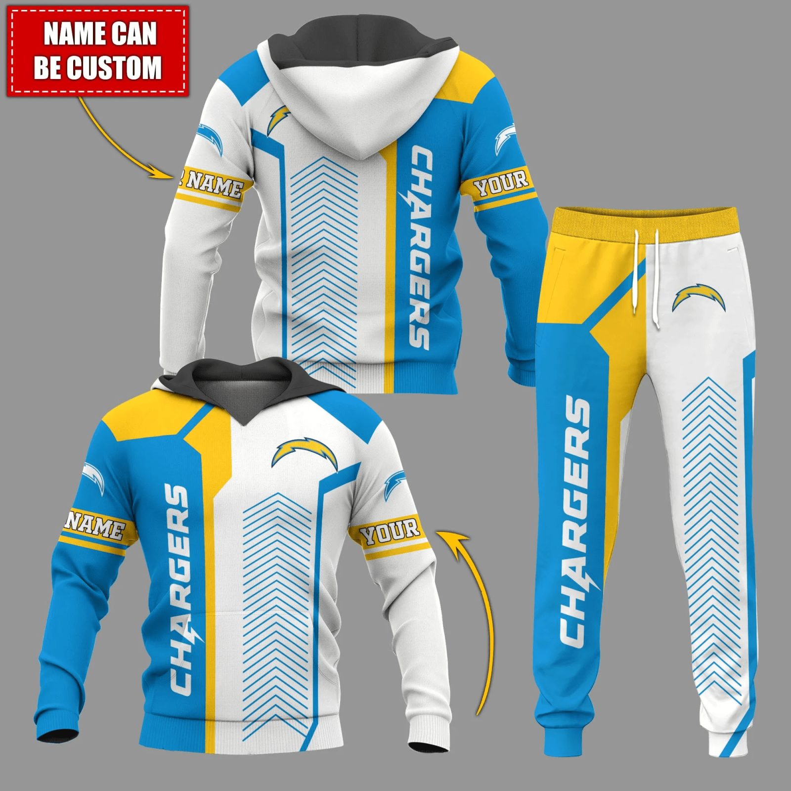 Los Angeles Chargers NFL Premium Sport 3D Hoodie& Jogger Personalized Name