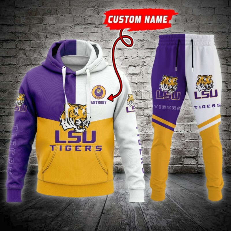 LSU Tigers NCAA Premium Sport 3D Hoodie& Jogger Personalized Name