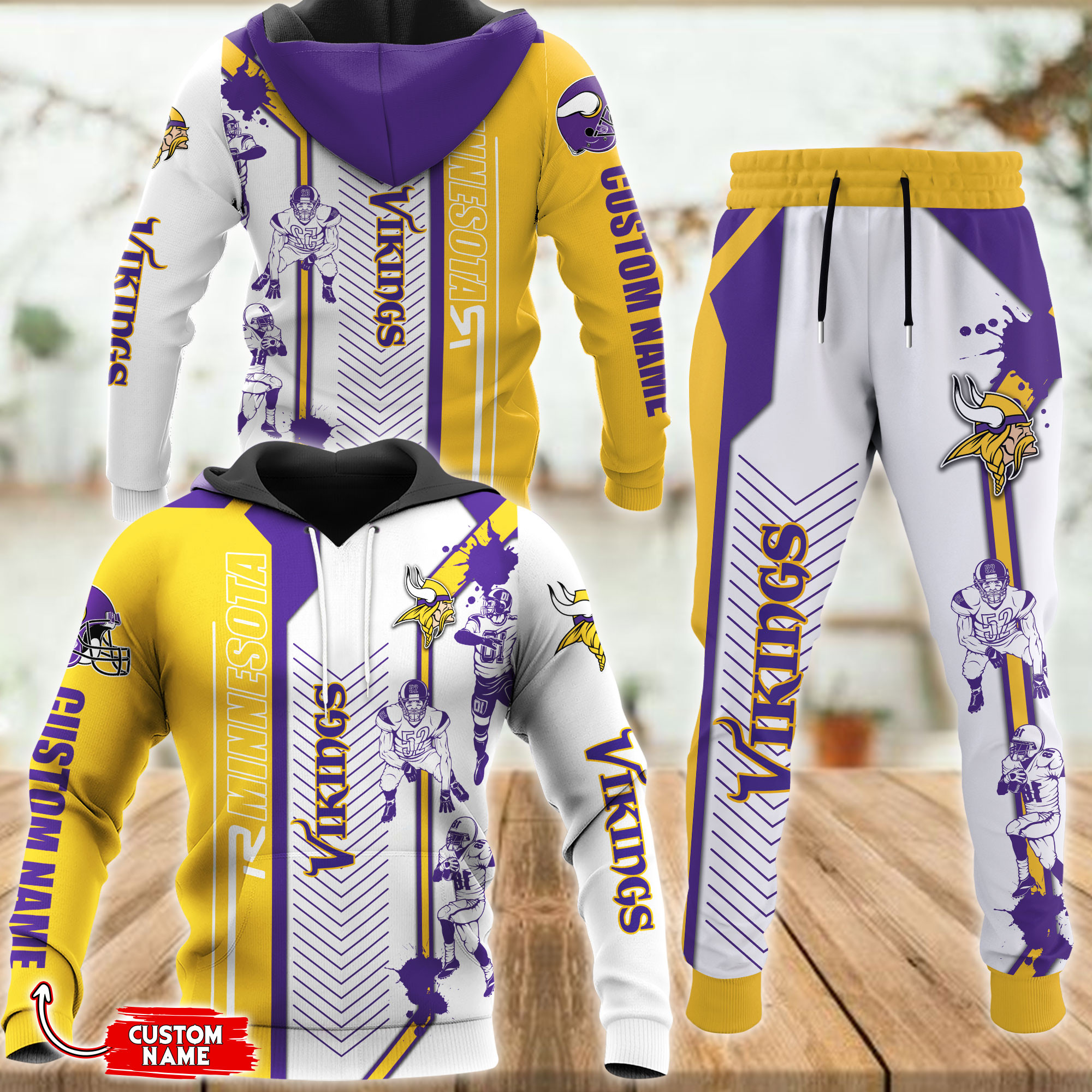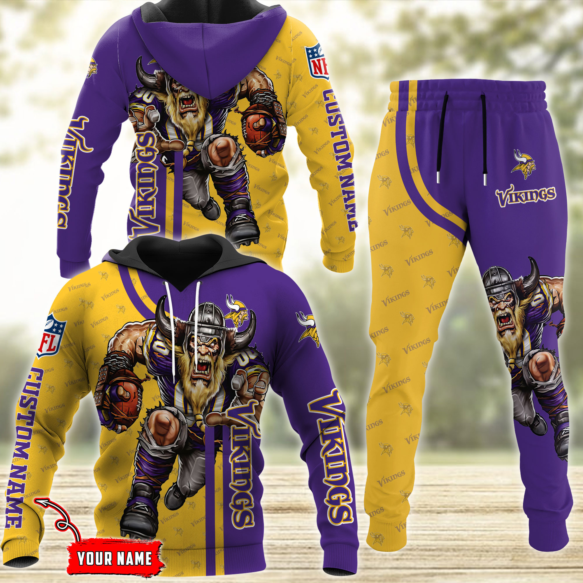 Minnesota Vikings NFL Mascot Premium Sport 3D Hoodie& Jogger Personalized Name