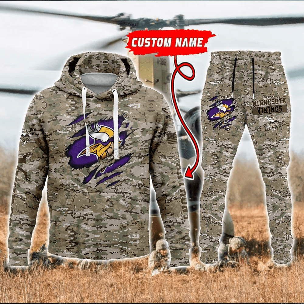Minnesota Vikings NFL Hunting Camo Premium Sport 3D Hoodie& Jogger Personalized Name