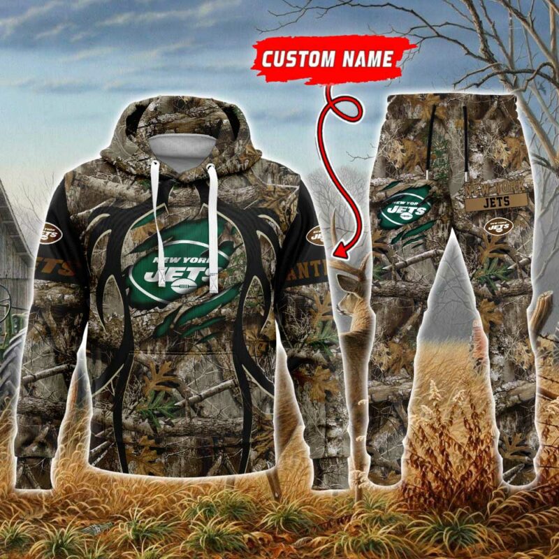 New York Jets NFL Hunting Camo Premium Sport 3D Hoodie& Jogger Personalized Name