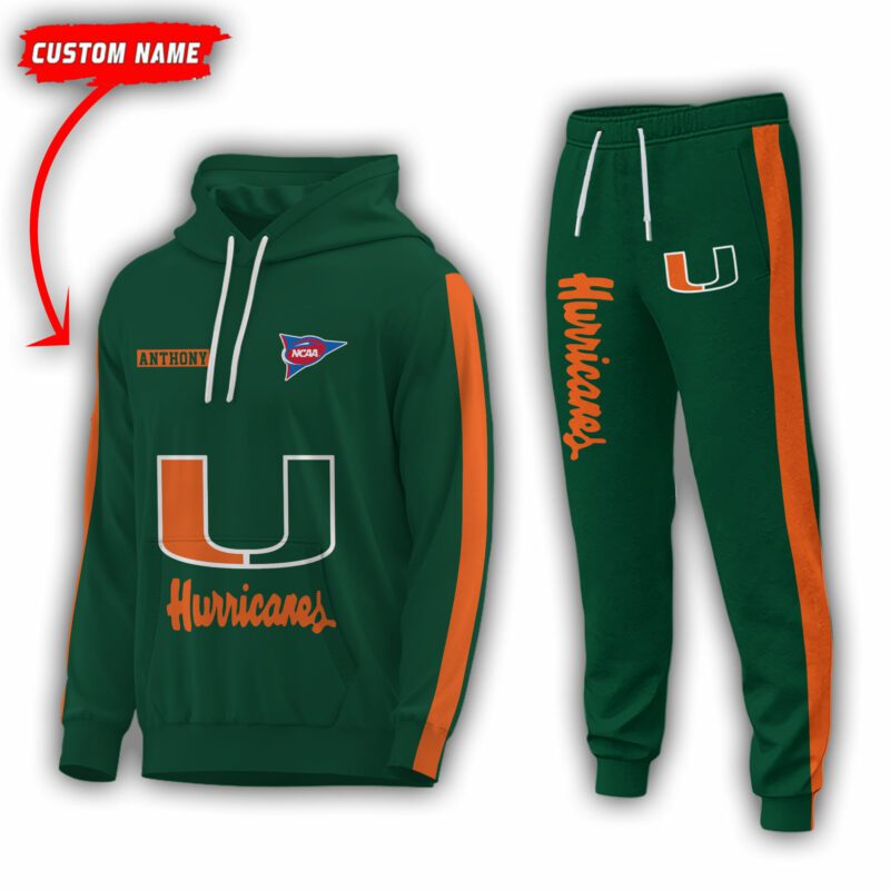 Personalized Name Miami Hurricanes NCAA Combo Sport 3D Hoodie & Jogger