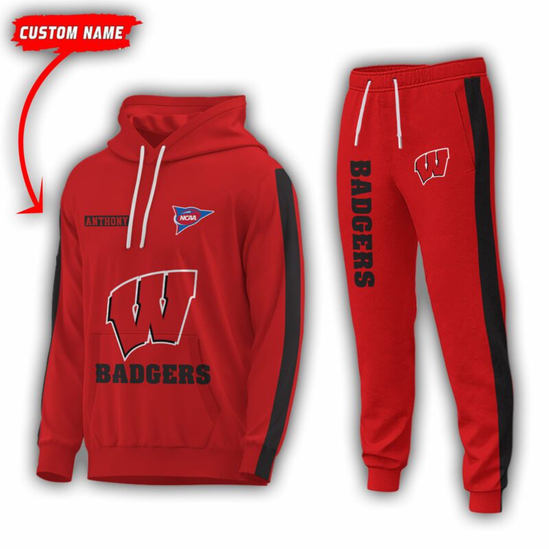 Personalized Name Wisconsin Badgers NCAA Combo Sport 3D Hoodie & Jogger