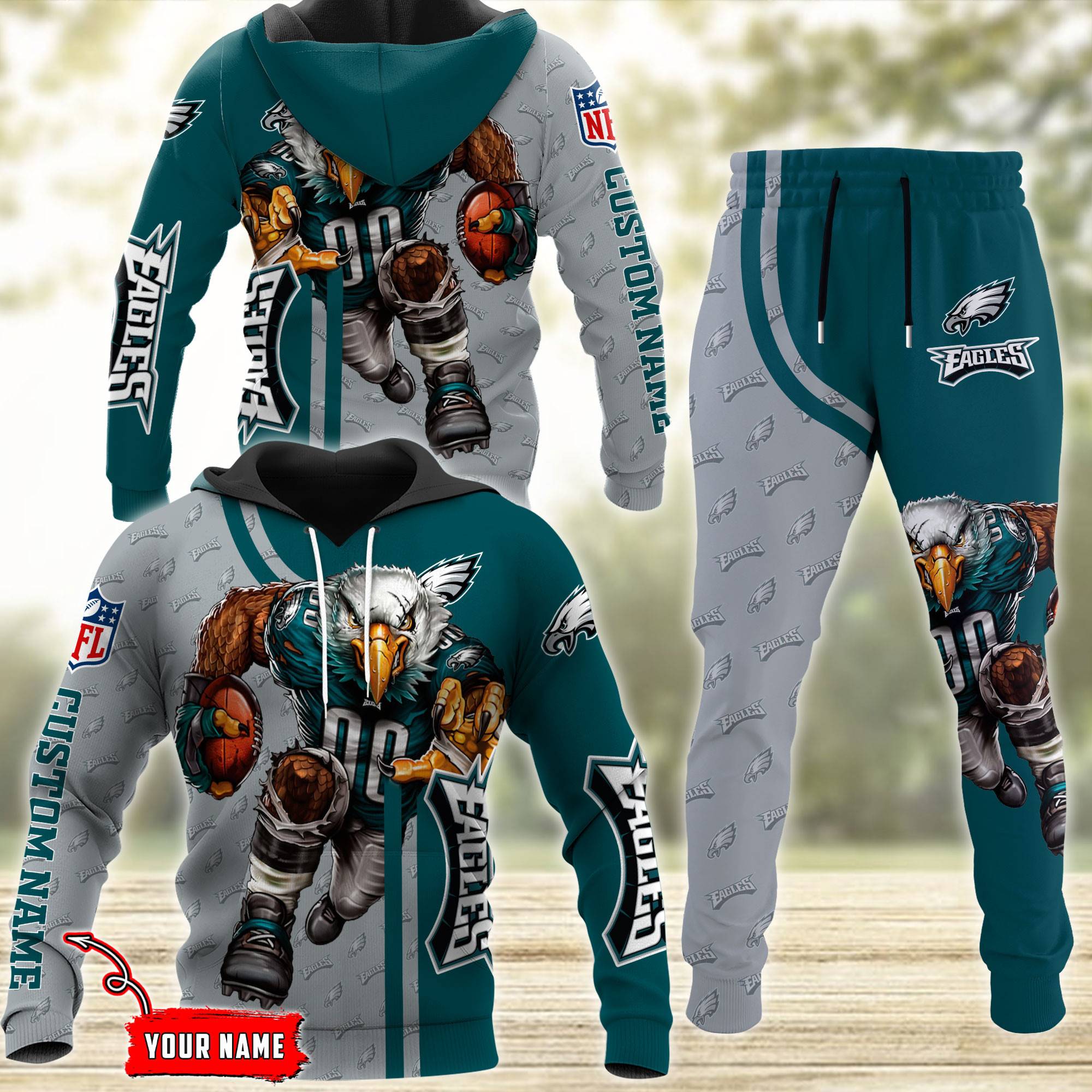 Philadelphia Eagles NFL Mascot Premium Sport 3D Hoodie& Jogger Personalized Name