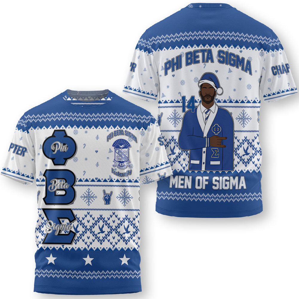 Personalized Phi Beta Sigma Christmas White Blue T-Shirts The Men Of Sigma Style