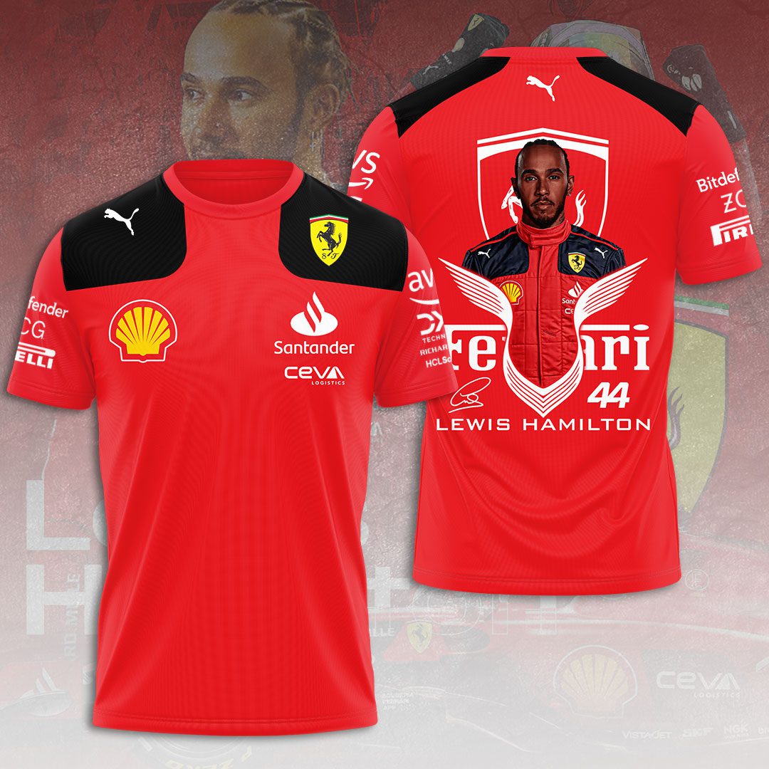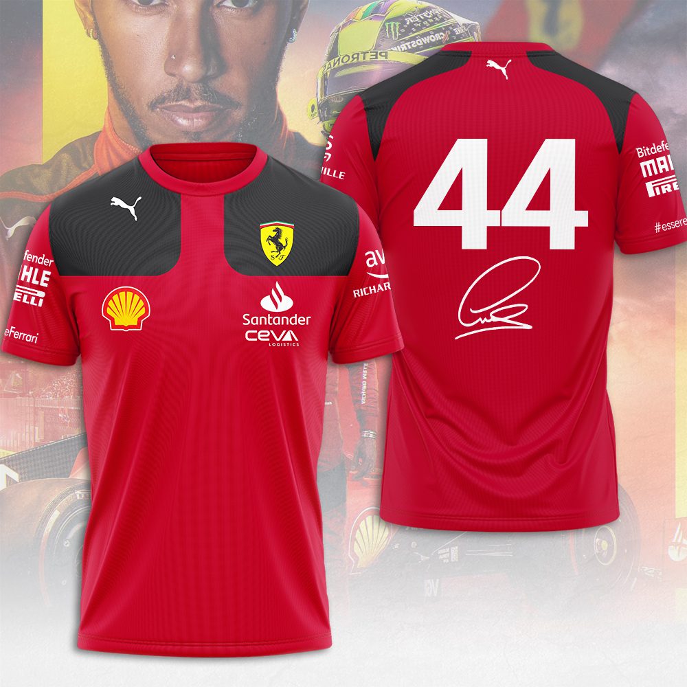 Lewis Hamilton X Scuderia Ferrari Red T-Shirt For Fans