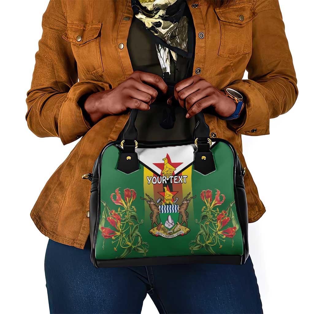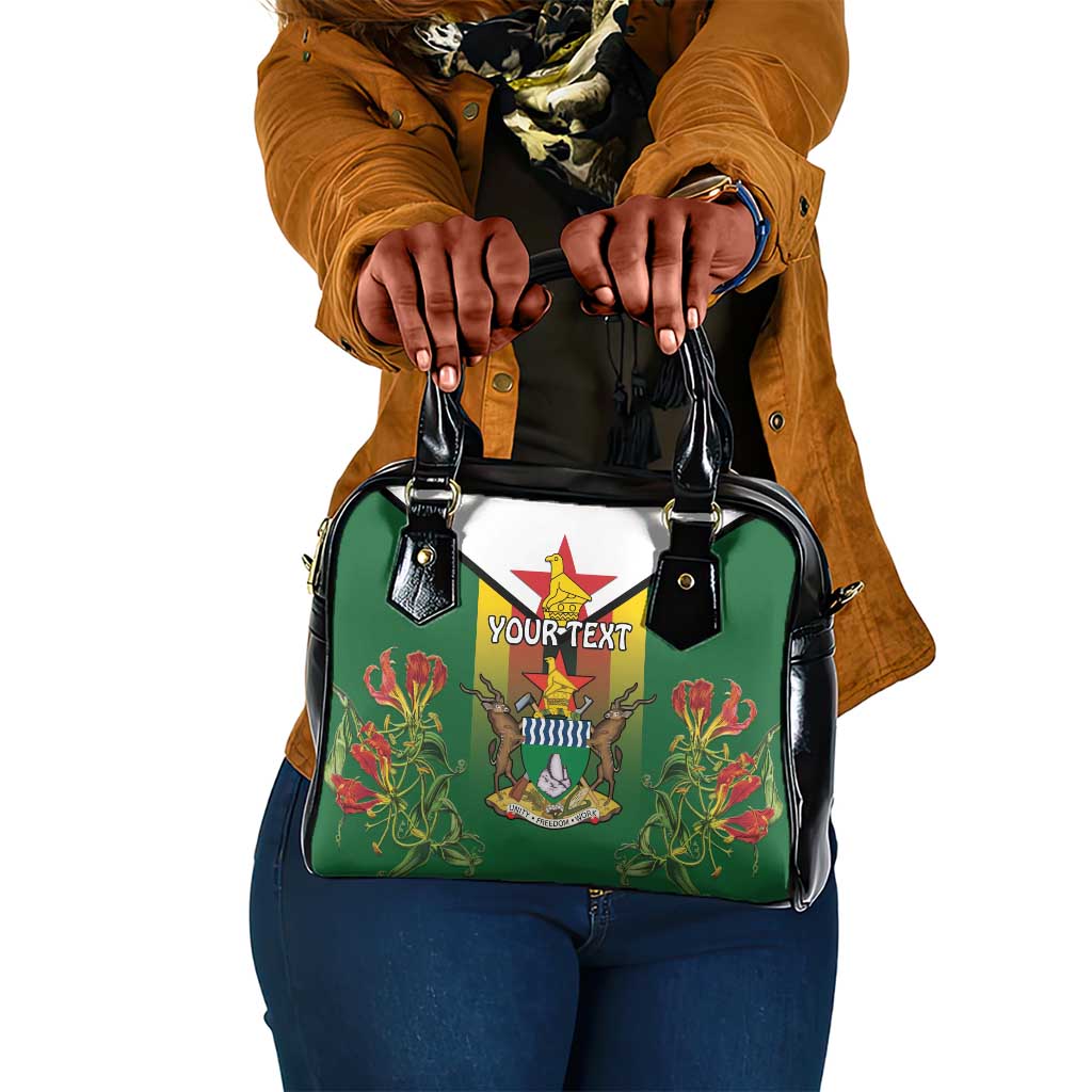 Personalised Zimbabwe Independence Day Shoulder Handbag Coat Of Arms Fire Lilies