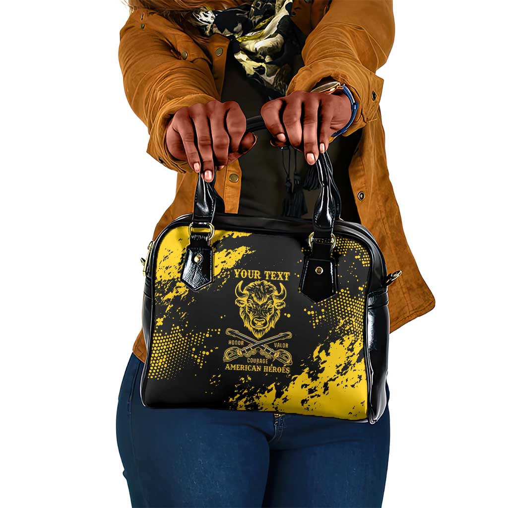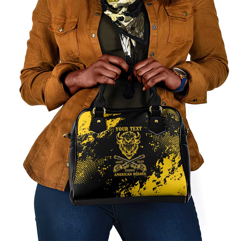 Personalized African American Heroes Shoulder Handbag Bison Buffalo Soldiers Black Grunge Style