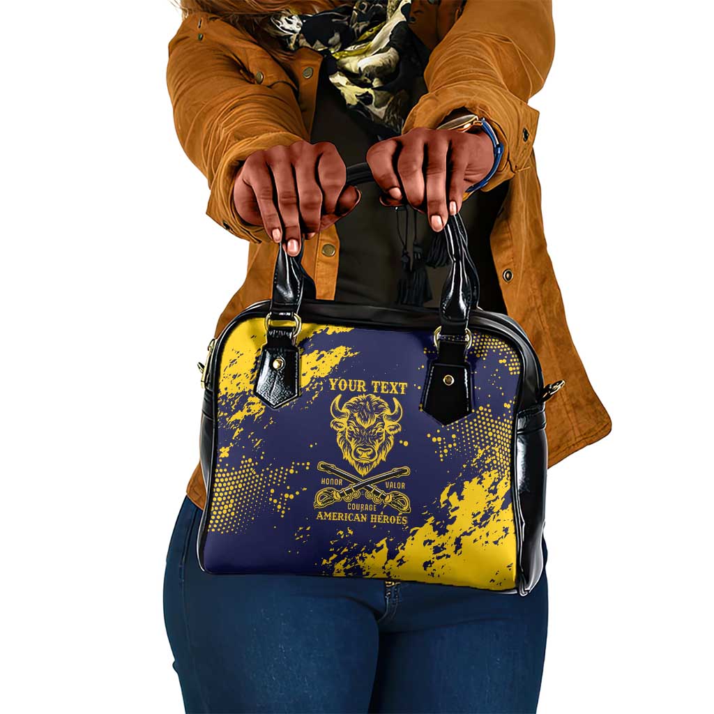 Personalized African American Heroes Shoulder Handbag Bison Buffalo Soldiers Blue Grunge Style