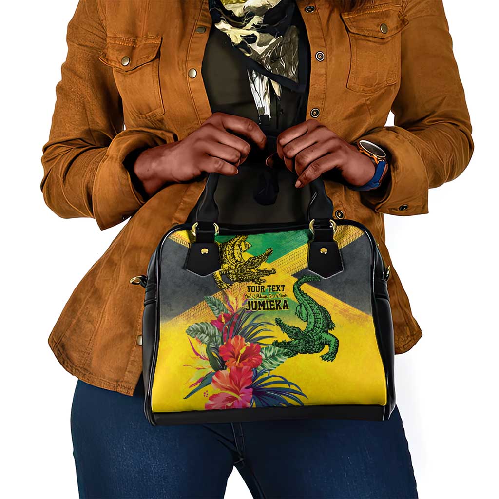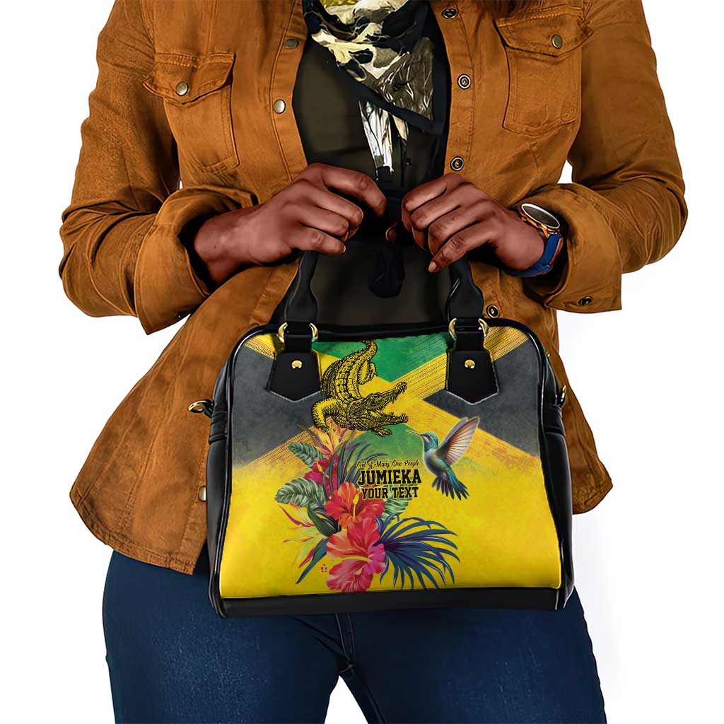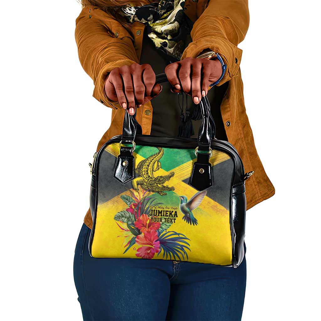 Personalized Black Jamaicans Crocodile Hummingbird Shoulder Handbag Tropical Flowers Grunge Flag
