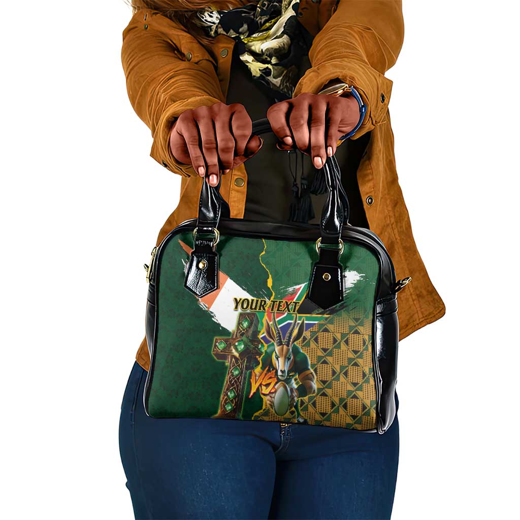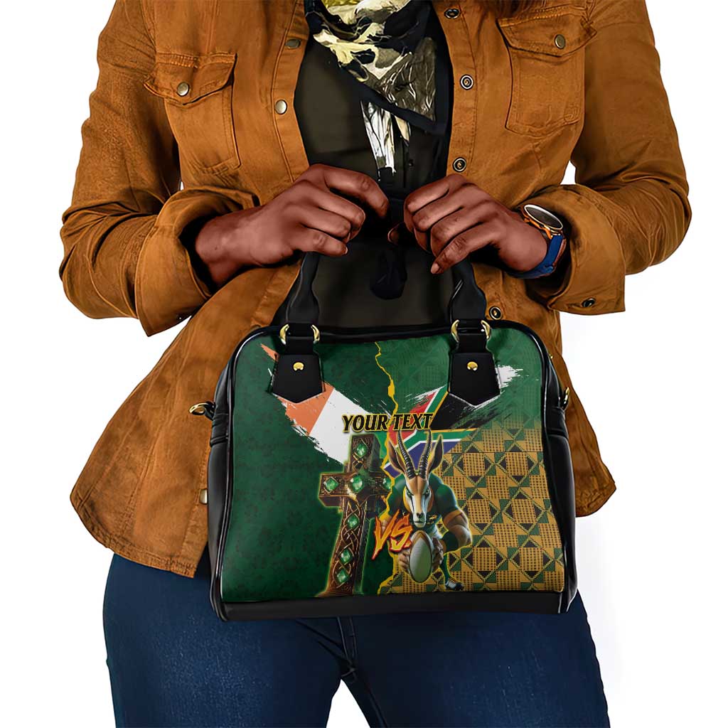 Personalized South Africa Versus Ireland Rugby Shoulder Handbag Springbok Mascot Celtic Cross Design