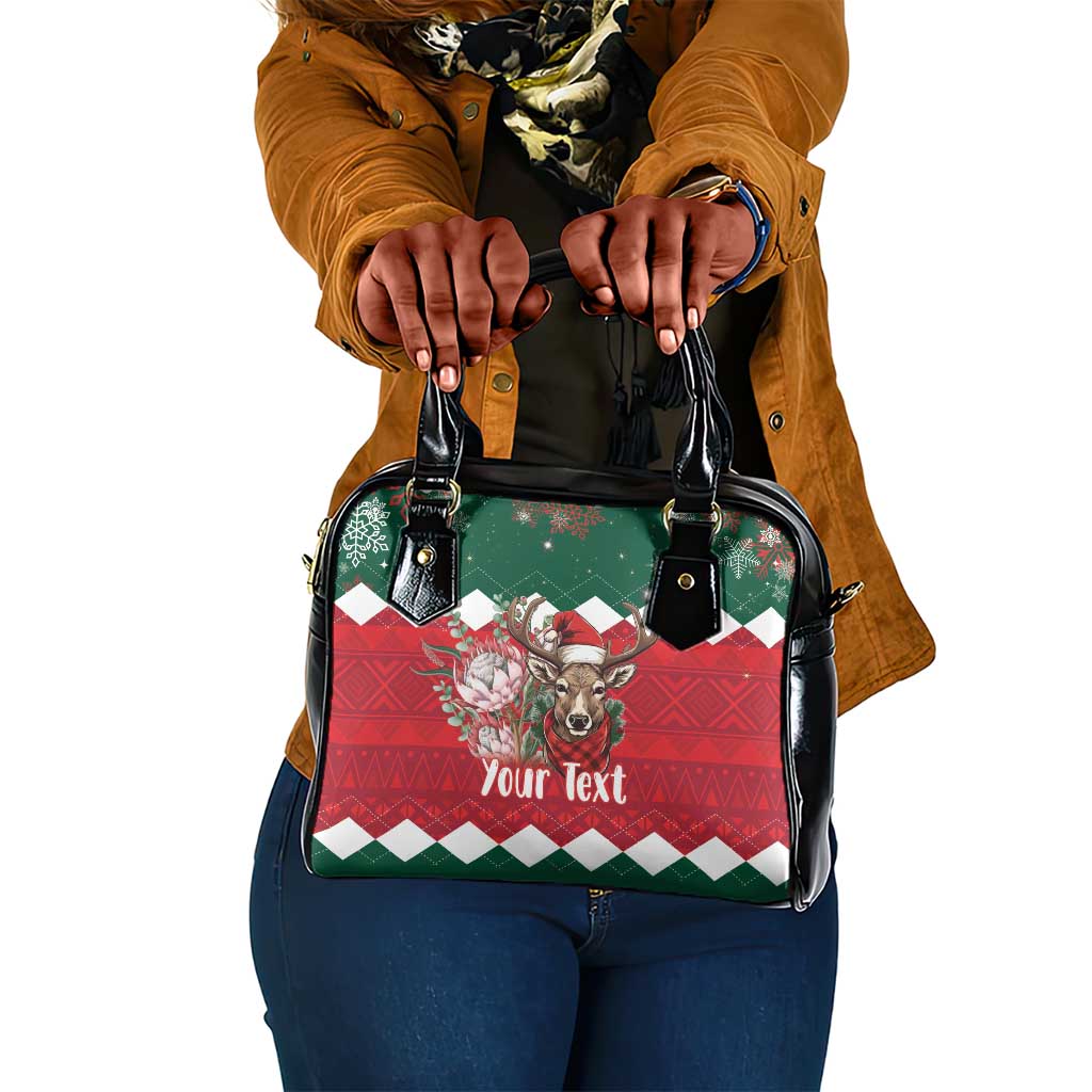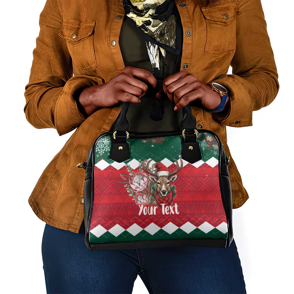 Personalized South Africa Merry Christmas Shoulder Handbag Springbok With King Protea
