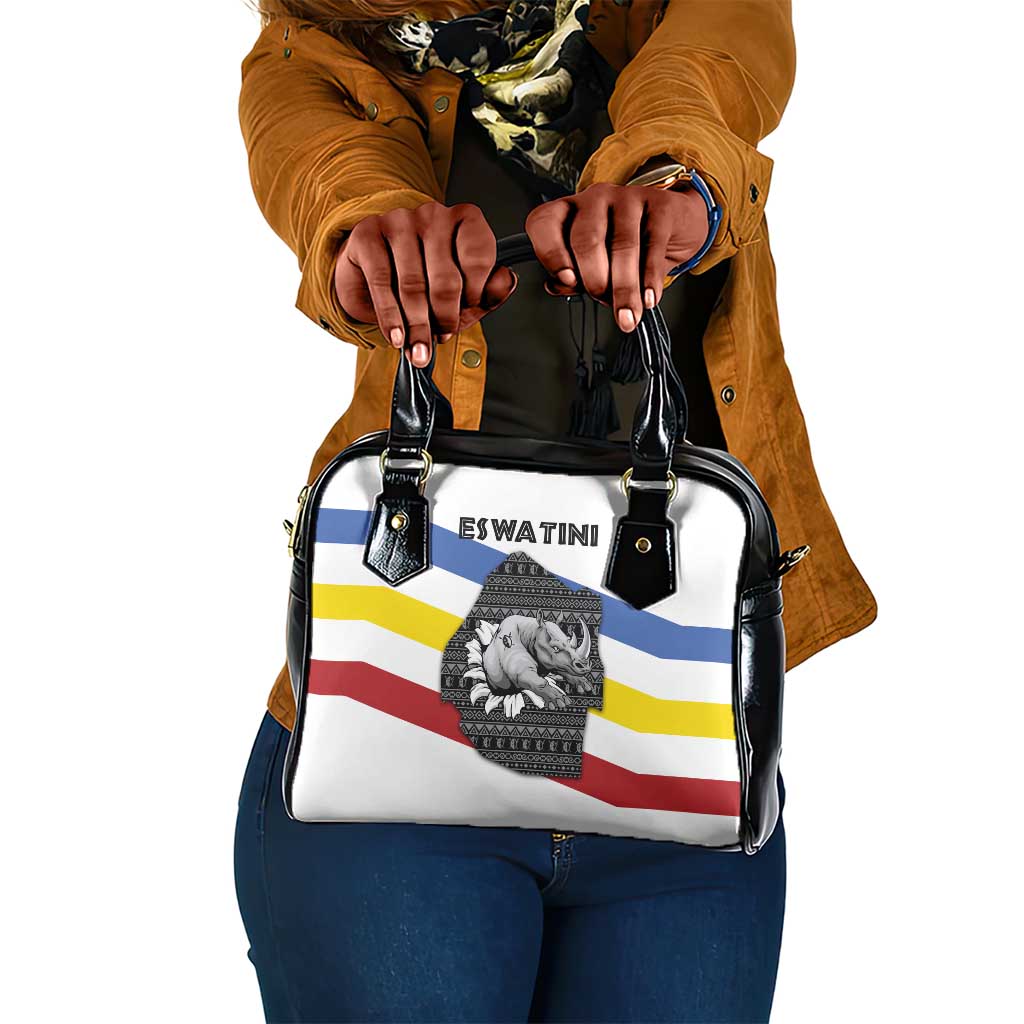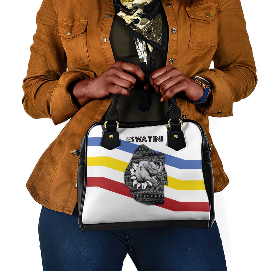 Eswatini Rhino Shoulder Handbag Swazi Map Flag And African Traditional Patterns