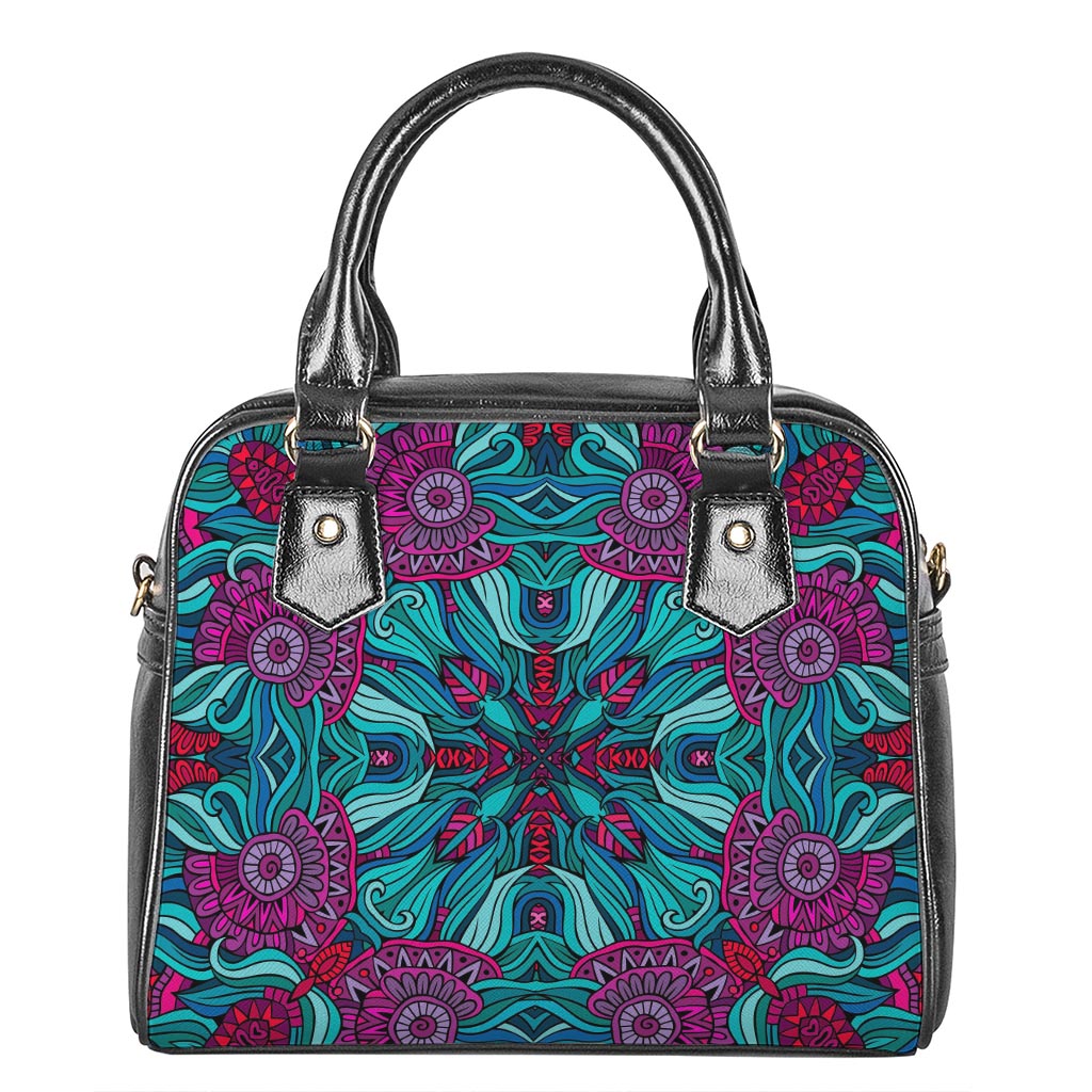 Ethnic Teal Bohemian Pattern Print Shoulder Handbag