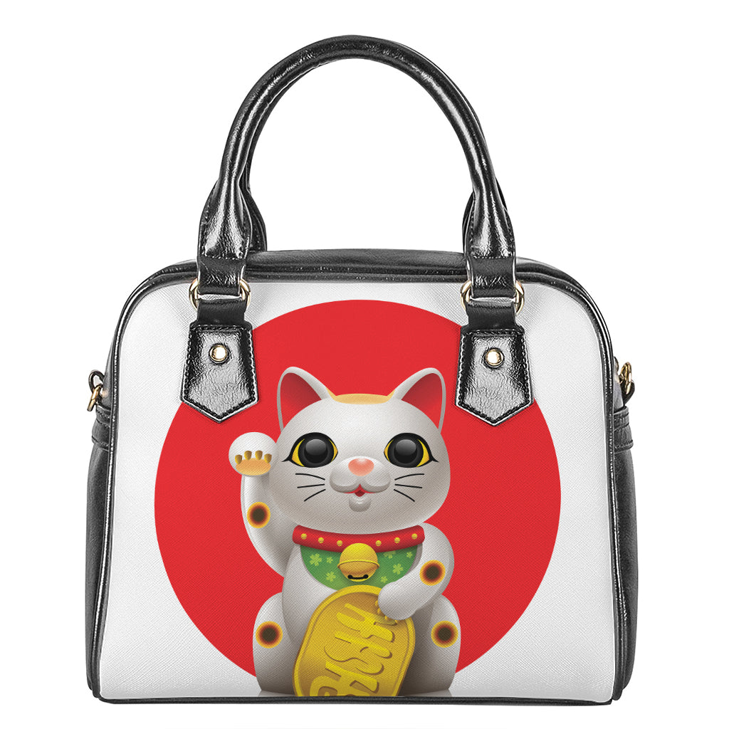 Japanese Lucky Cat Maneki Neko Print Shoulder Handbag
