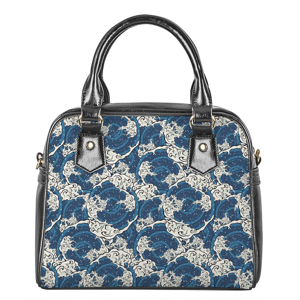 Japanese Ocean Wave Print Shoulder Handbag
