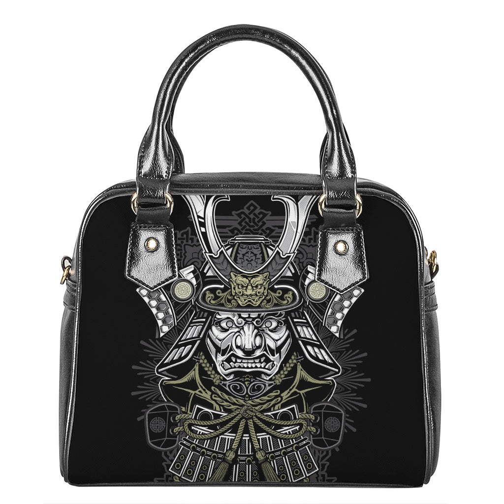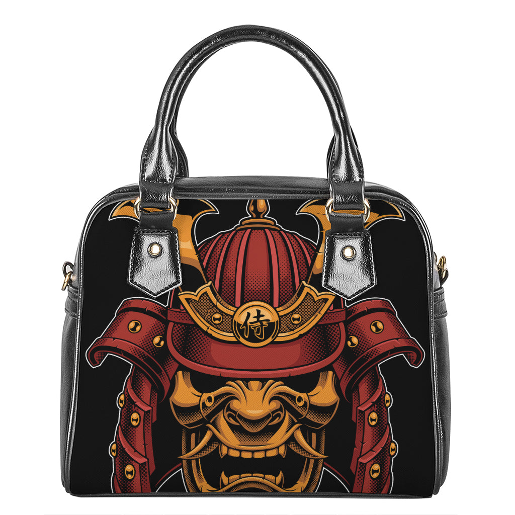 Japanese Samurai Warrior Mask Print Shoulder Handbag