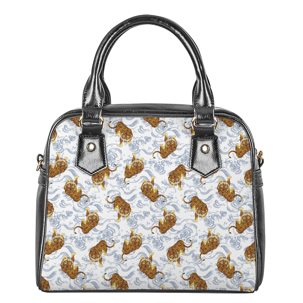Japanese White Tiger Pattern Print Shoulder Handbag