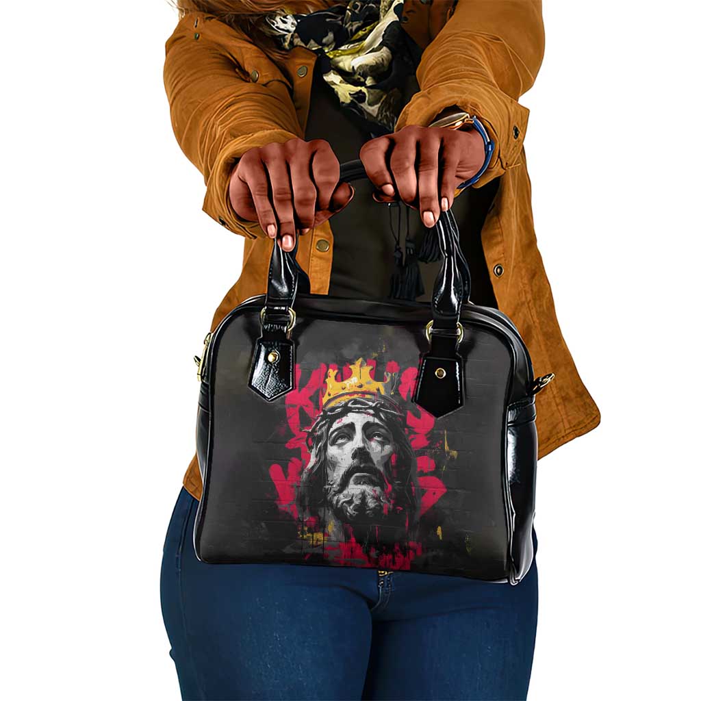 Jesus Graffiti Design Shoulder Handbag Crowned Portrait And Urban Street Art Style