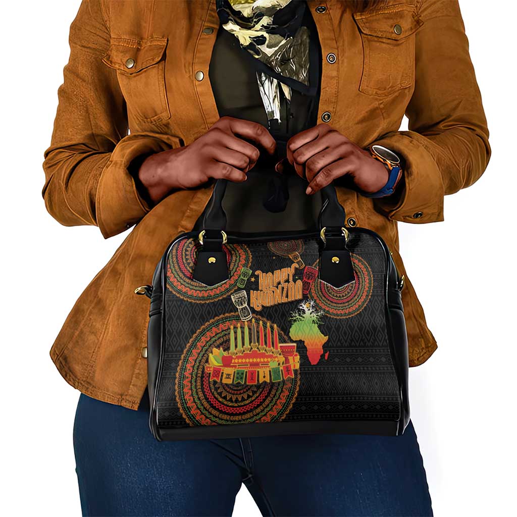 Kwanzaa Festival Shoulder Handbag With Kinara Candles And African Pattern