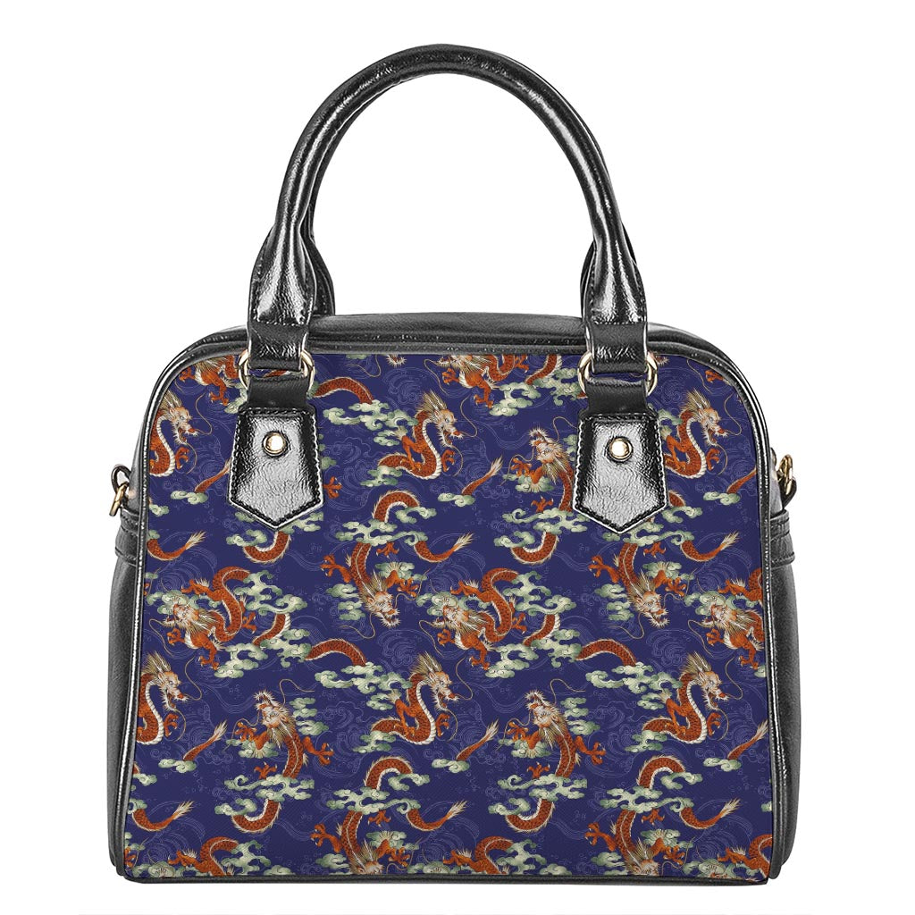 Orange Japanese Dragon Pattern Print Shoulder Handbag