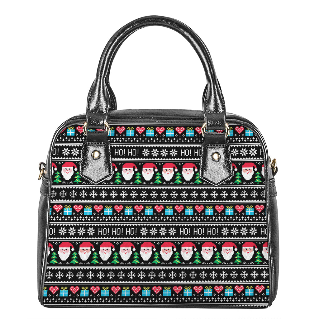 Pixel Christmas Santa Claus Print Shoulder Handbag