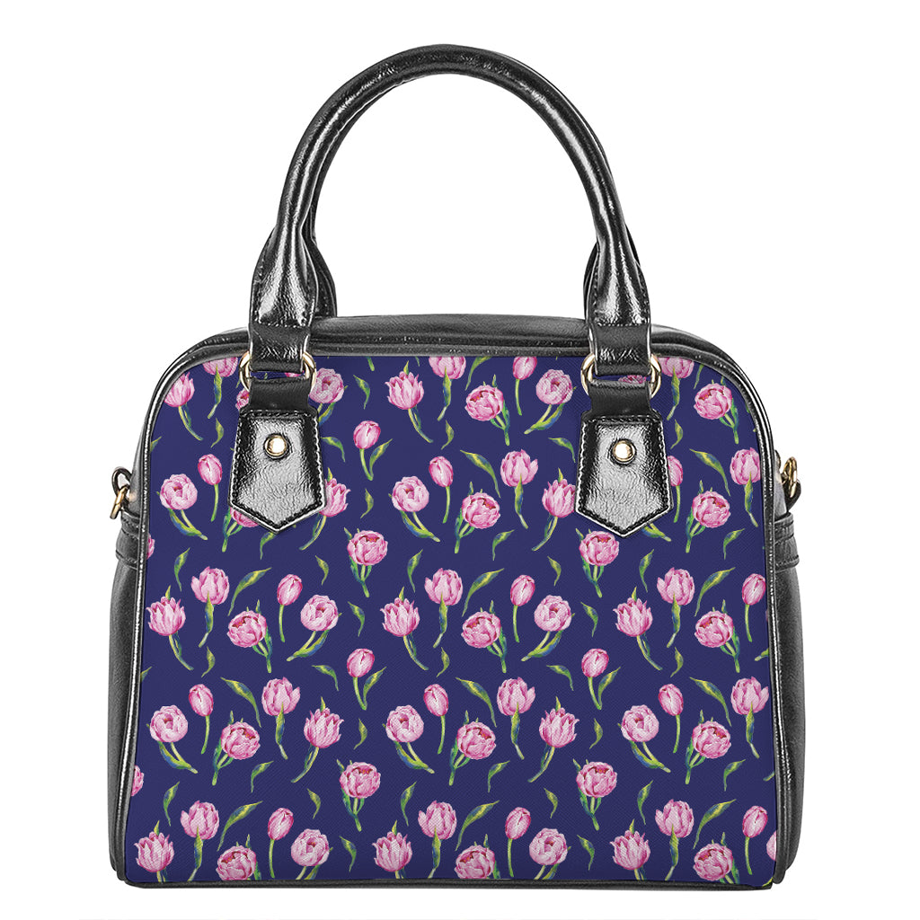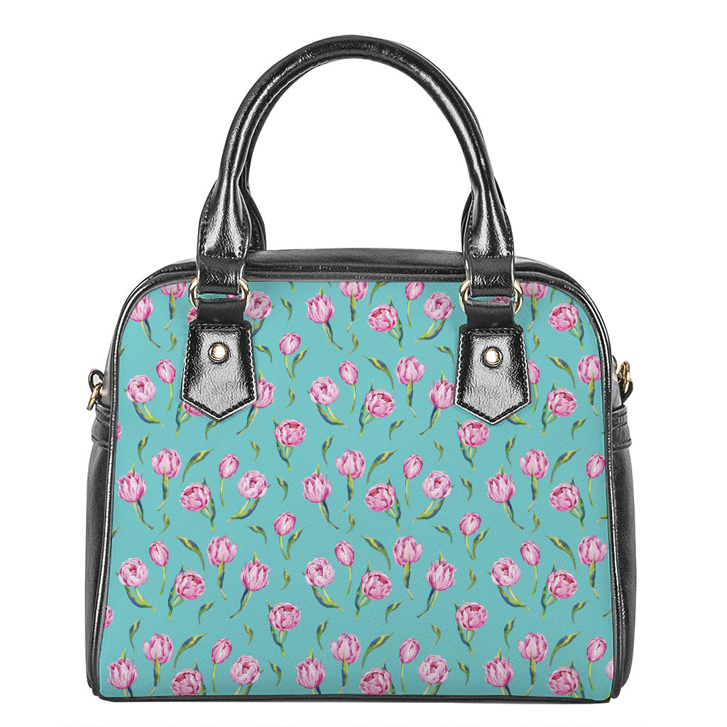 Pink Watercolor Tulip Flower Print Shoulder Handbag