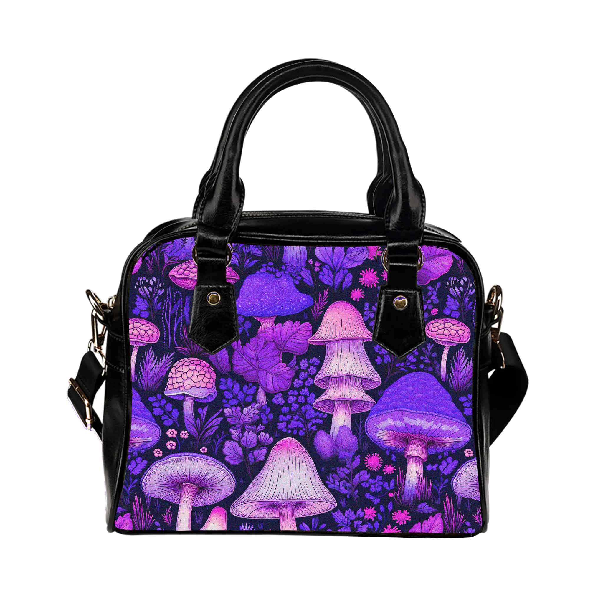 Purple Panda And Flower Pattern Print Shoulder Handbag