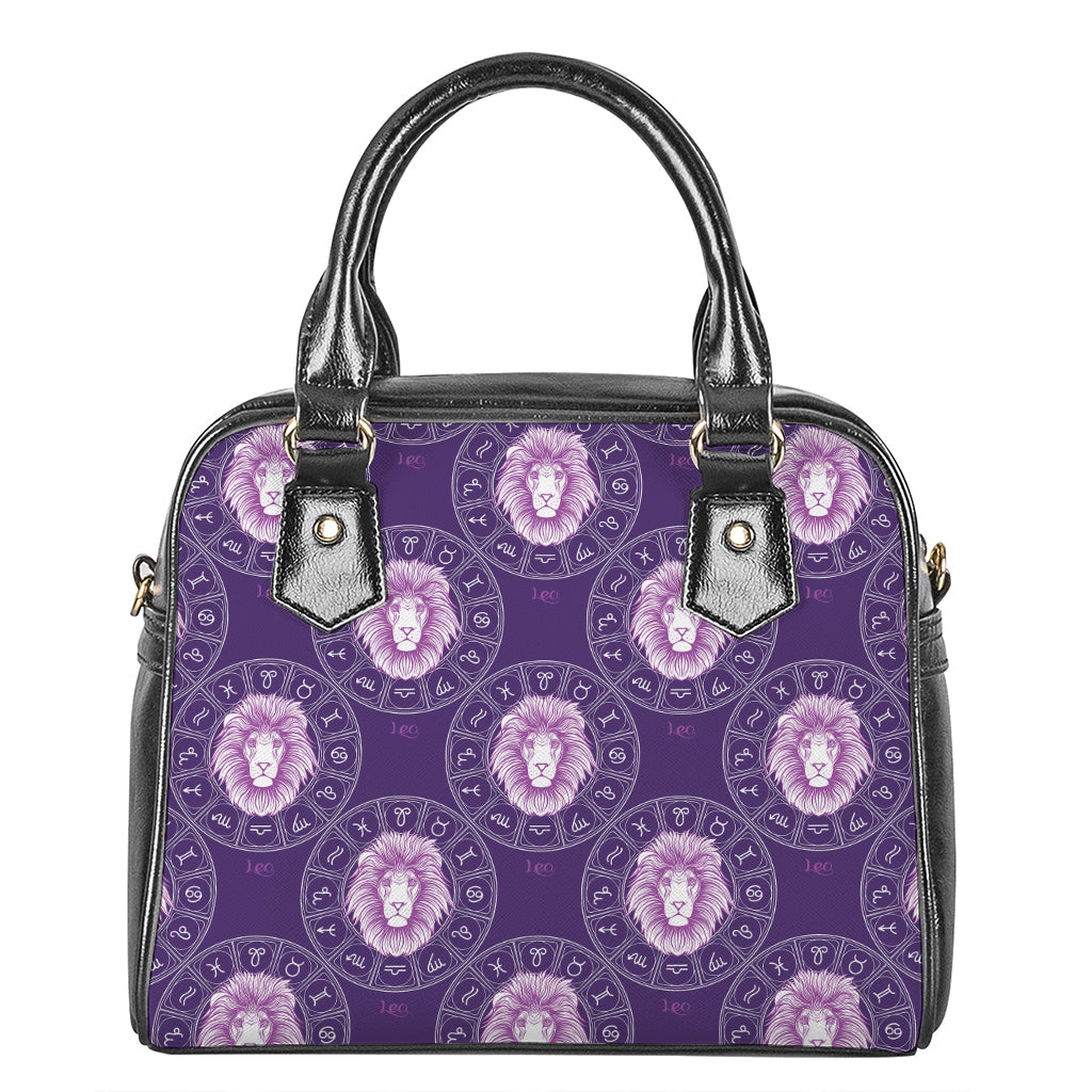 Purple Leo Zodiac Pattern Print Shoulder Handbag