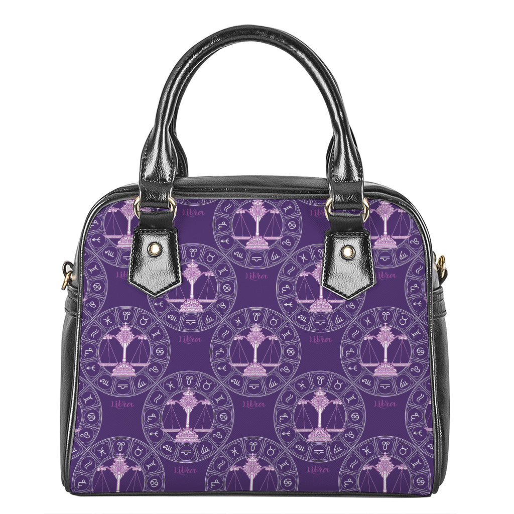 Purple Libra Zodiac Pattern Print Shoulder Handbag