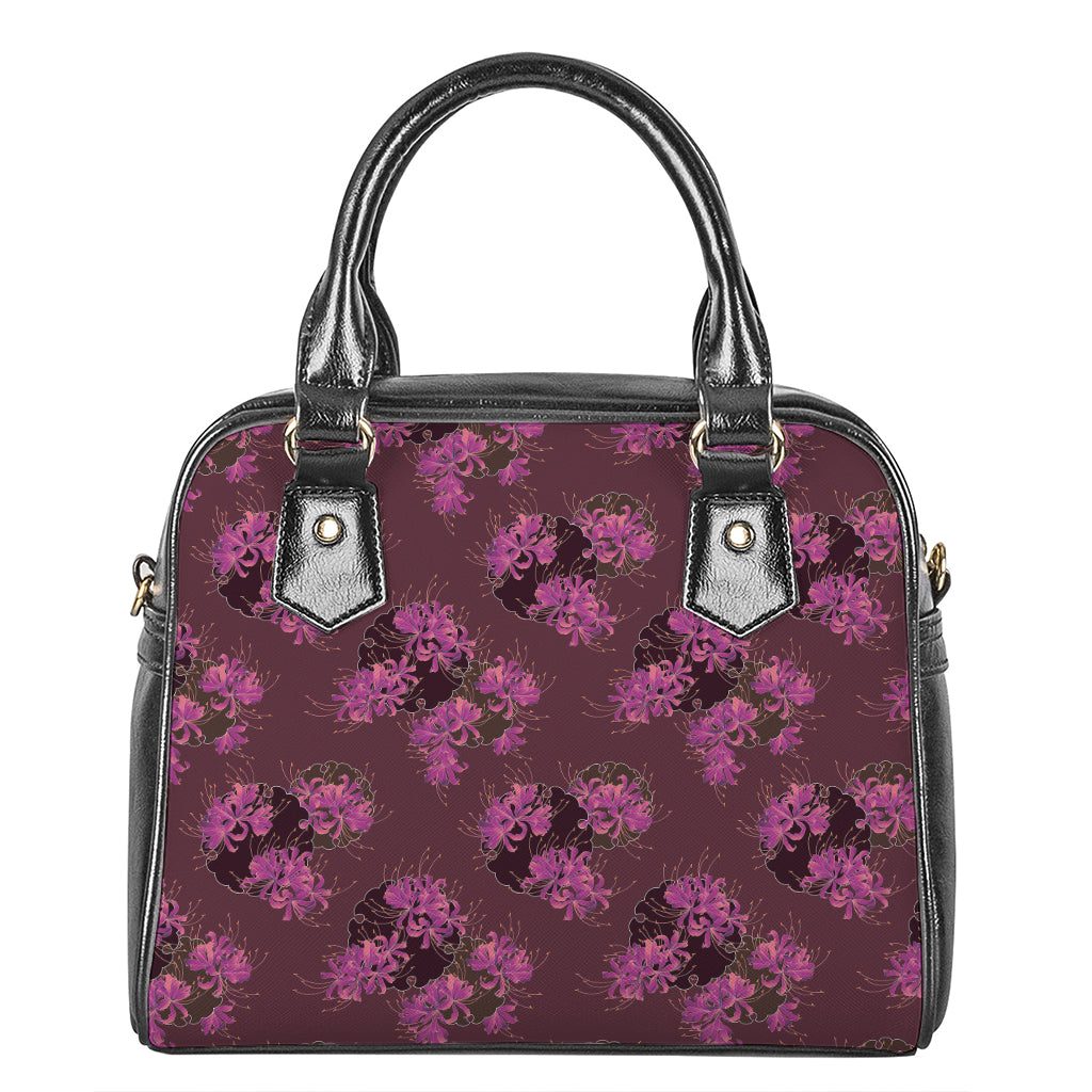 Purple Japanese Amaryllis Pattern Print Shoulder Handbag