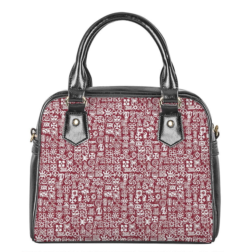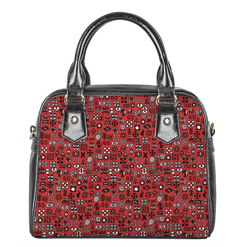 Red Adinkra Tribe Symbols Print Shoulder Handbag